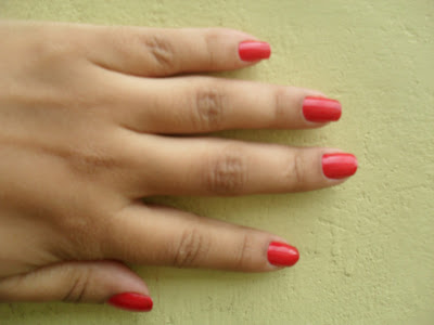 Pra essa semana escolhi um vermelho bem cheguei......Usei "Tapete vermelho" da Colorama. Que é um vermelho bem sangue. Como sempre, passei duas camadas e o óleo secante, pra resolver nosso problema mais rápido hahahaha.
